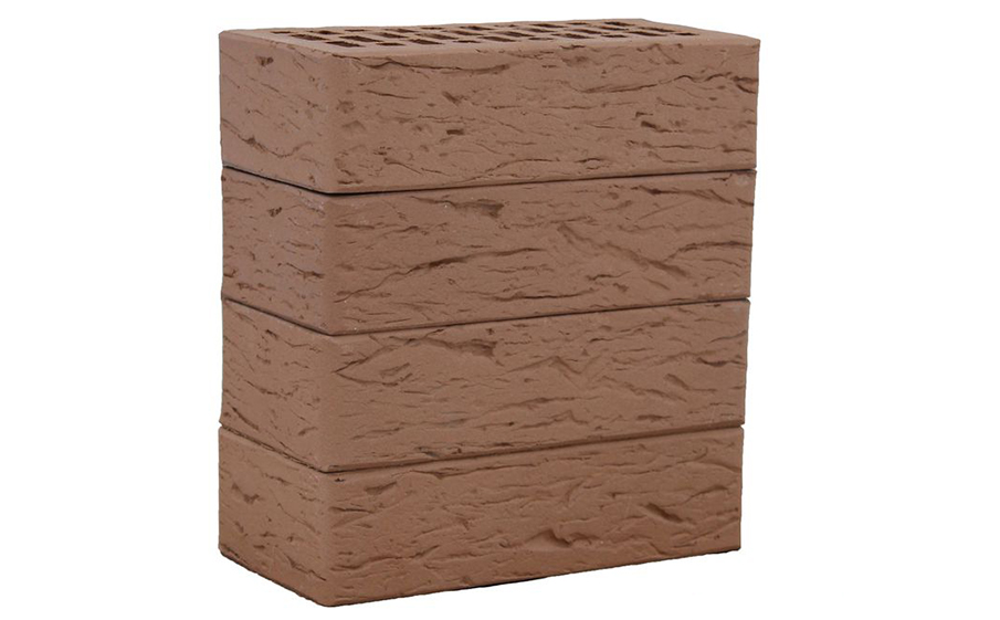 Кирпич облицовочный пустотелый ЛСР, светло-коричневый флэш, рустик, 250x120x65 мм
