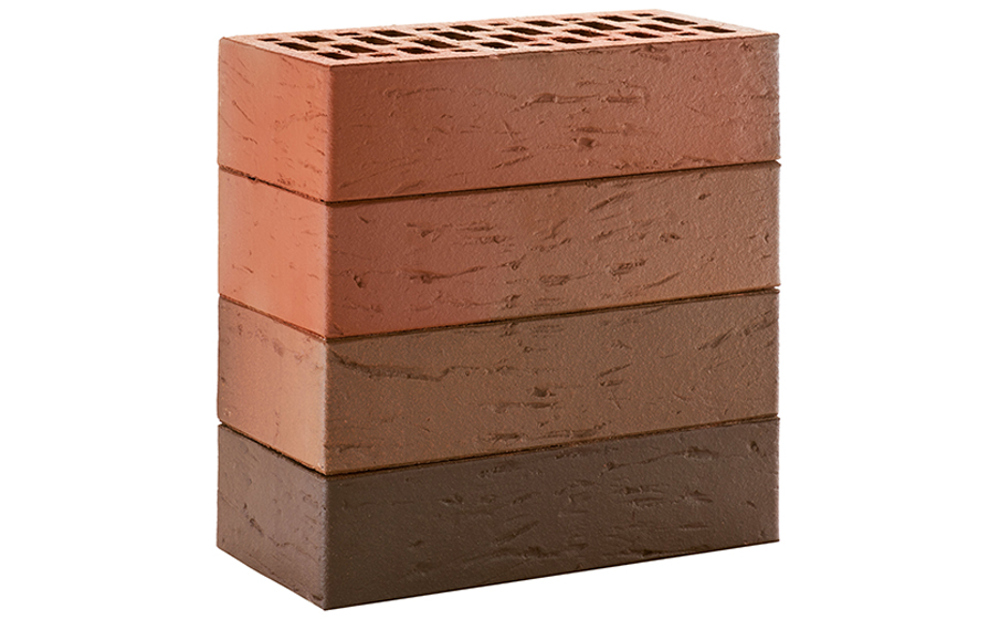 Кирпич облицовочный пустотелый ЛСР, красный флэш ультра с пепельной посыпкой, рустик, 250x120x65 мм